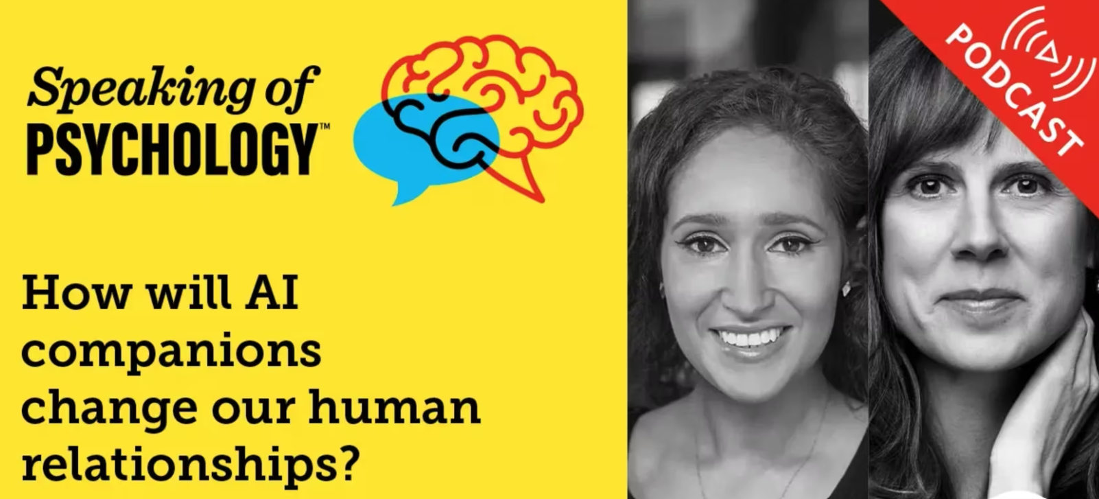 Our Chief Clinical Officer, Ashleigh Golden, PsyD, MSCP recently contributed to the American Psychological Association's flagship podcast, Speaking of Psychology, as well as an accompanying Monitor on Psychology piece exploring how AI companions and chatbots are reshaping human connection.